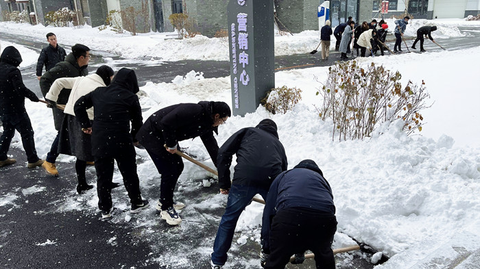 集團(tuán)黨委積極響應(yīng)市委關(guān)于《讓黨旗在應(yīng)對(duì)冰雪天氣工作第一線高高飄揚(yáng)》的倡議,自11月7日起連續(xù)兩天組織黨員,并帶動(dòng)團(tuán)員、廣大員工在航空產(chǎn)業(yè)園區(qū)開展積雪清掃行動(dòng),充分發(fā)揮黨員先鋒模范作用,以主力軍、突擊隊(duì)的實(shí)際行動(dòng)踐行共產(chǎn)黨員的光榮使命。