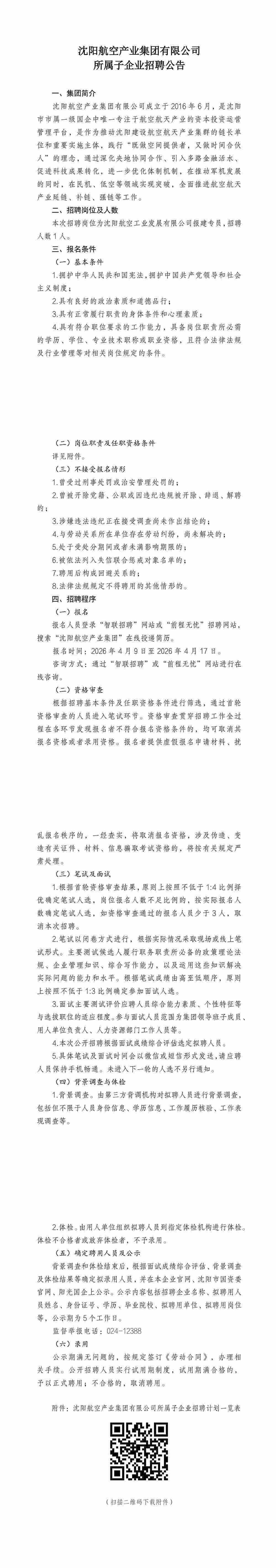 沈陽(yáng)航空產(chǎn)業(yè)集團(tuán)有限公司招聘公告